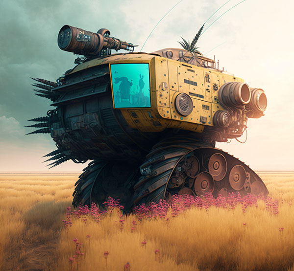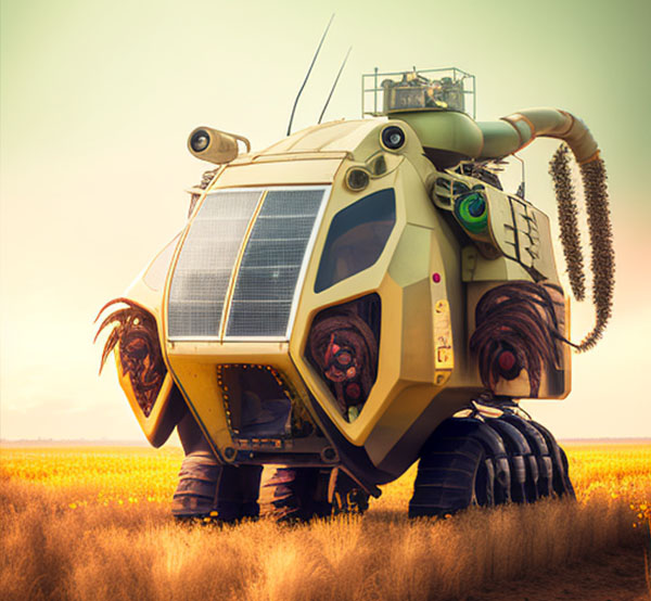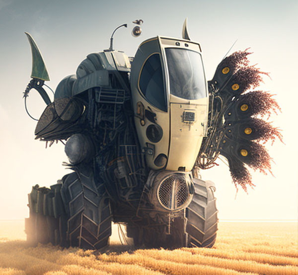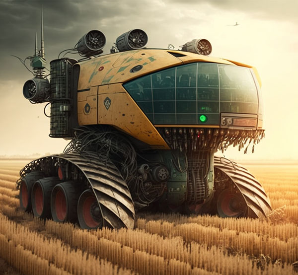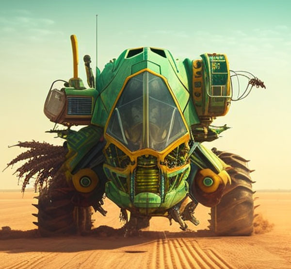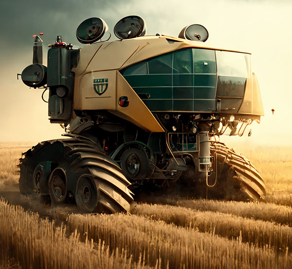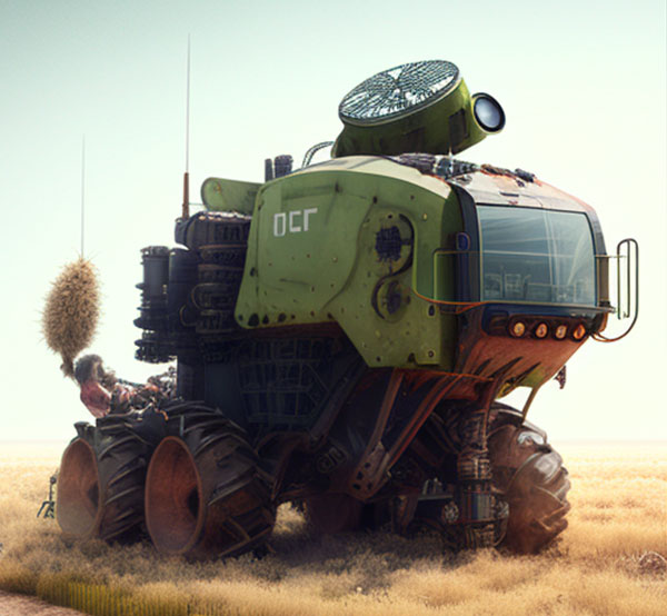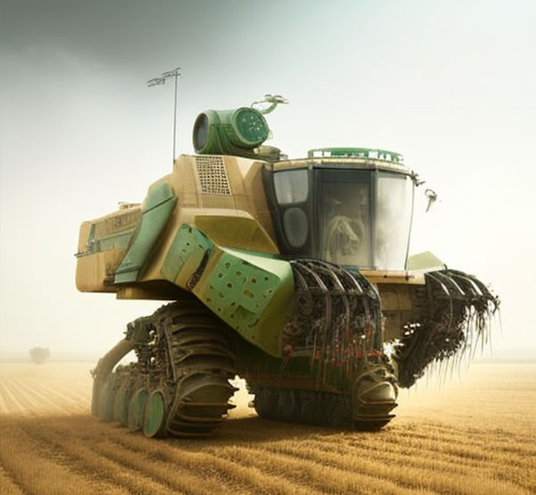 Pra quem nunca viu uma colheitadeira pode imaginar um pequeno trator. Trata-se de um monstro sobre rodas maior que um elefante que por onde passa colhe tudo pela frente. Hoje essas grandes máquinas funcionam de forma automática, não diferente de muitos produtos tecnológicos, recebe as diretrizes e as segue como um piloto automático. Contudo, como seria se essas máquina saíssem do controle? Pensar que nessa revolução digital e nessa consciência maquínica passem a compreender o mal que o grande latifúndio, monocultura, uma agricultura predatória baseado nos latifúndios é prejudicial ao meio ambiente, como seriam essas máquinas que se revoltam contra esse sistema.