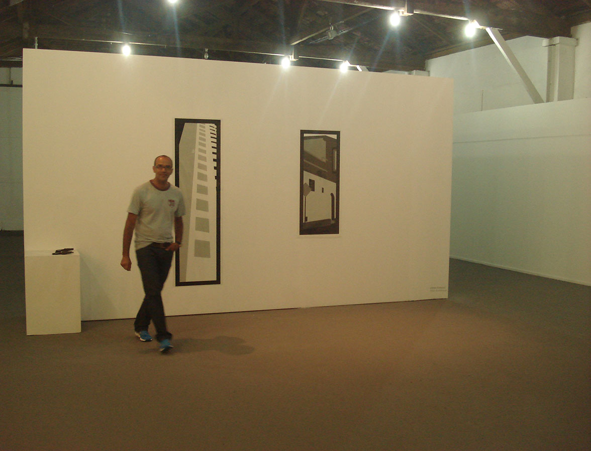 Entrelinhas consiste em desenhos de prédios que tem por seu preenchimento palavras escritas em fontes minúsculas, as menores fontes possíveis em uma impressão.