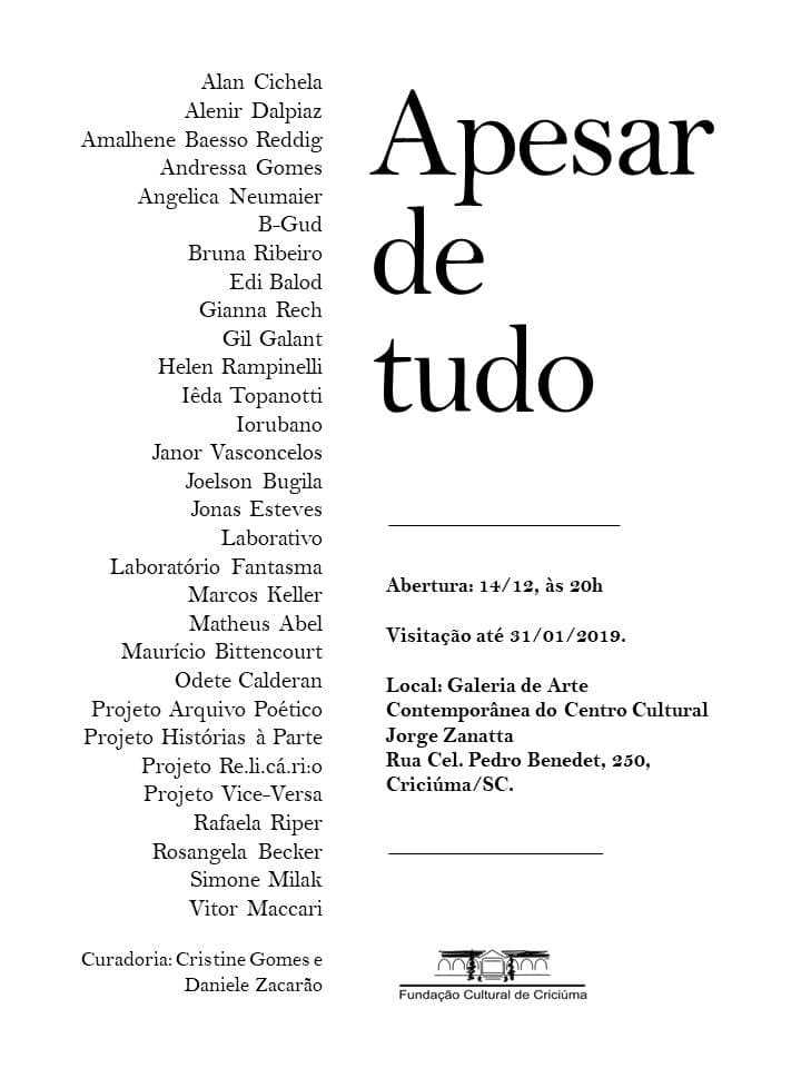 Apesar de tudo - Exposição coletiva na Fundação Cultural de Criciúma